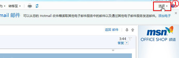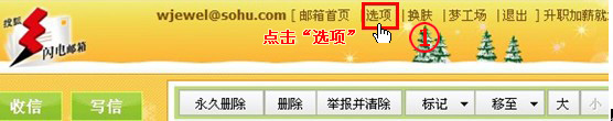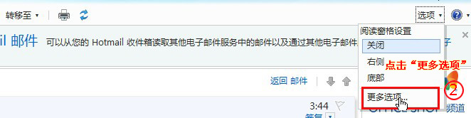 第一步:打开邮箱,点击网页右上角的“选项”,并在展开的菜单中点击“更多选项”。