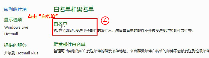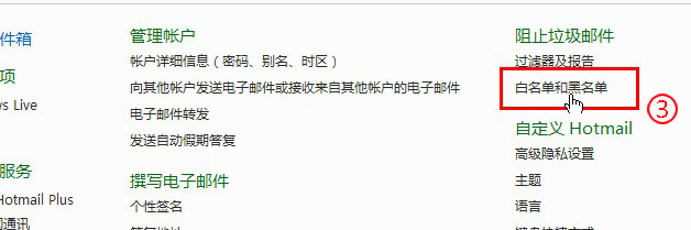 第二步:点击“阻止垃圾邮件”下的“白名单和黑名单”。