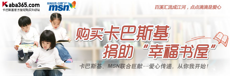 2011年01月07日起,凡通过本活动页面购买卡巴斯基指定产品,卡巴斯基会将每笔交易额中的10%捐赠给那些贫困地区的孩子,为他们建造幸福书屋!