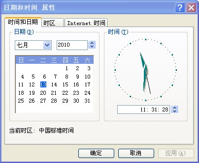 在 日期和时间属性 窗口中检查设定日期 (年,月,日) 为当前日期
