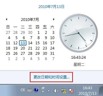 在打开的窗口中点击 更改日期和时间设置... 链接