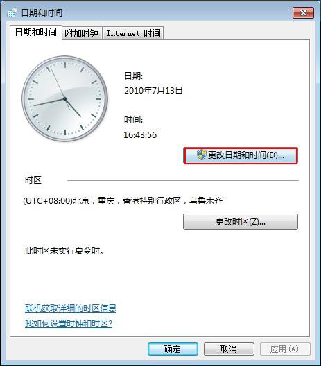 在 日期和时间 窗口中点击 更改日期和时间 按钮