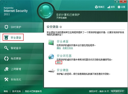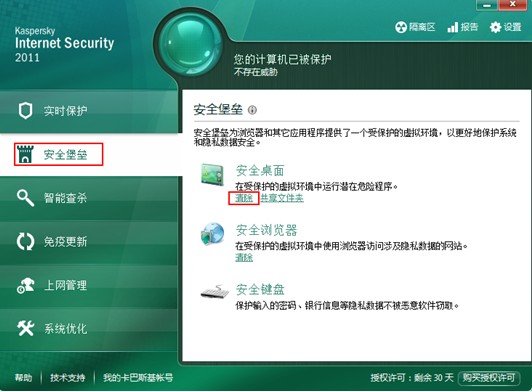 如何清除卡巴斯基安全部队2011的安全堡垒中的数据?