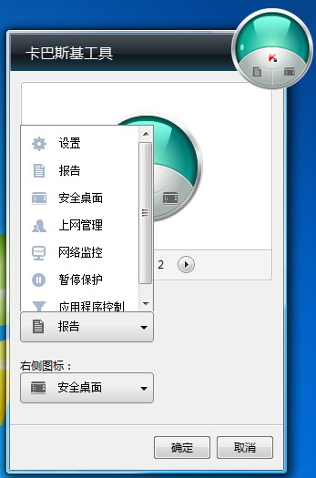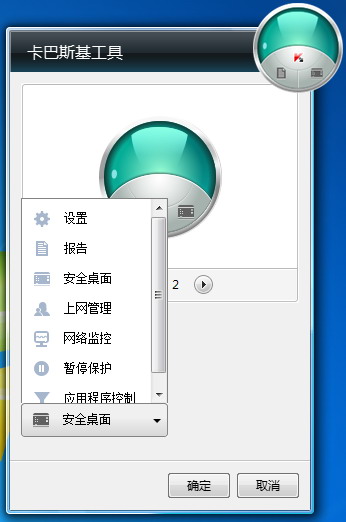 卡巴斯基工具的设计目的是,为了加速访问卡巴斯基程序的主要功能组件:保护状态、对象扫描以及程序运行报告等等。