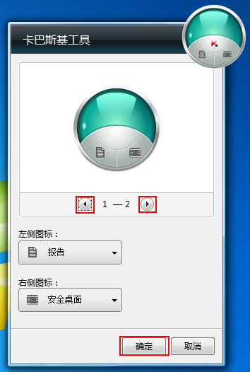 2.在卡巴斯基工具窗口从左侧图标和右侧图标的下拉菜单中,选择点击工具的左右按钮所执行的操作。