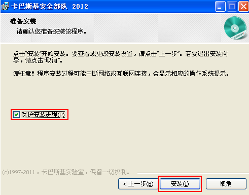 步骤6:在此步骤中,将会在安装前建议您指定最终的配置。建议您勾选保护安装进程。如果在安装过程中出现一些错误,这个选项可以帮助我们做正确的备份。当您重新安装程序时,推荐您不选此项。