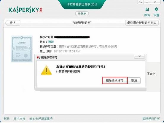 如何删除卡巴斯基2012的授权文件?