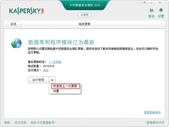 如何把卡巴斯基2012恢复到上一次更新