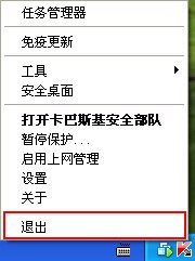 3.然后点击桌面右下角的卡巴斯基图标,点击鼠标右键选择退出。