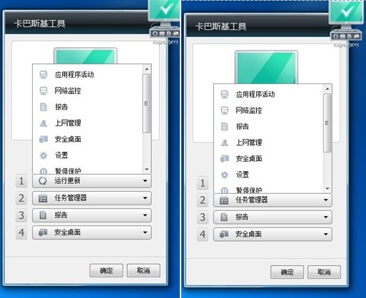 通过对卡巴斯基工具进行配置,您可以使用上面的按钮进行以下操作:
