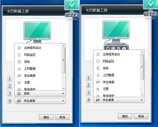 卡巴斯基工具的设计目的是为了快速访问卡巴斯基程序的主要功能组件:保护状态、对象扫描以及程序运行报告等等。