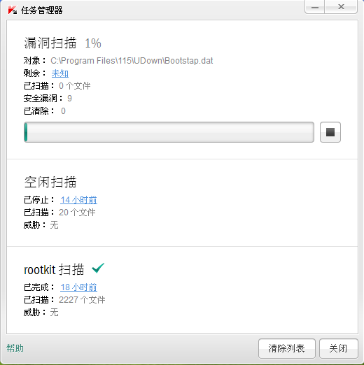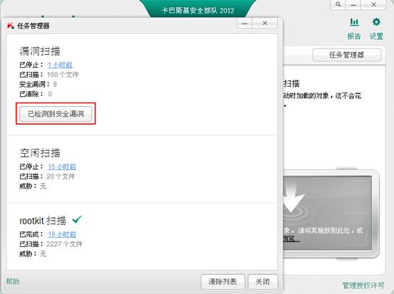 l 在已检测到安全漏洞和任务管理器中的已检测到安全漏洞中可查看扫描结果
