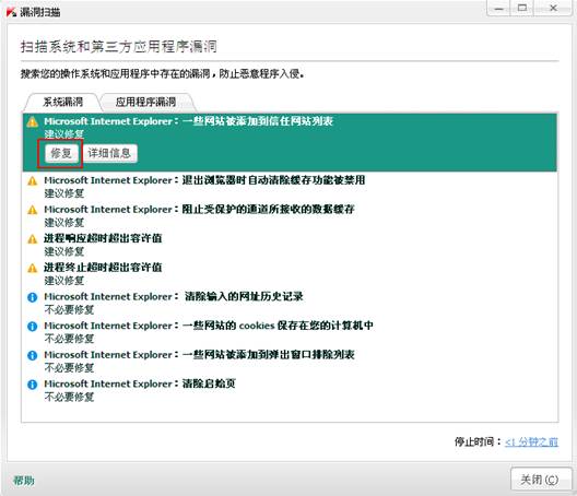 想要消除系统漏洞,选择一个选项,然后单击修复按钮。