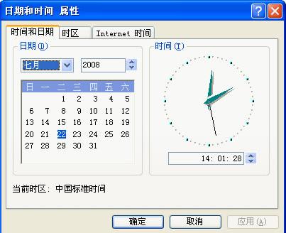 将鼠标移至屏幕右下角系统托盘中的时间图标(如图),并且双击在弹出的时间菜单中认真核对系统的年、月、日,请确认日期正确。