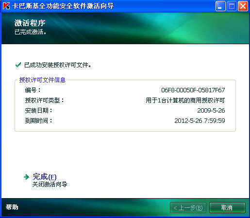 如果出现以下界面,那么祝贺您已经成功了,否则需要重新检查系统时间,软件版本和使用期限等条件是否完备,并且在确定后再次尝试,激活成功如下图: