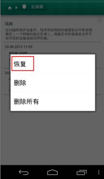 · 将隔离中的文件恢复至被隔离前的位置;
