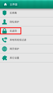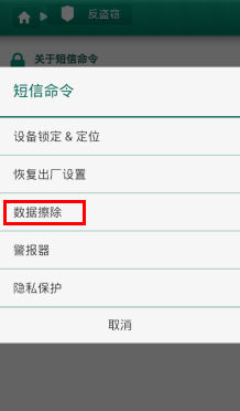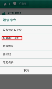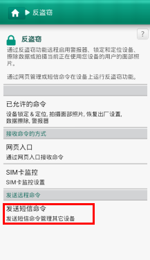 3.在反盗窃界面,选择发送短信命令->发送短信命令。