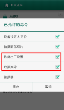 · 数据擦除 —启用该功能可以远程擦除数据。