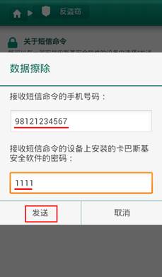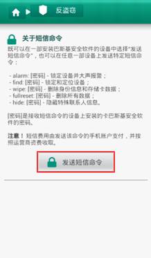 为了安全起见,卡巴斯基实验室专家建议您通过卡巴斯基安全软件安卓版界面发送短信命令。
